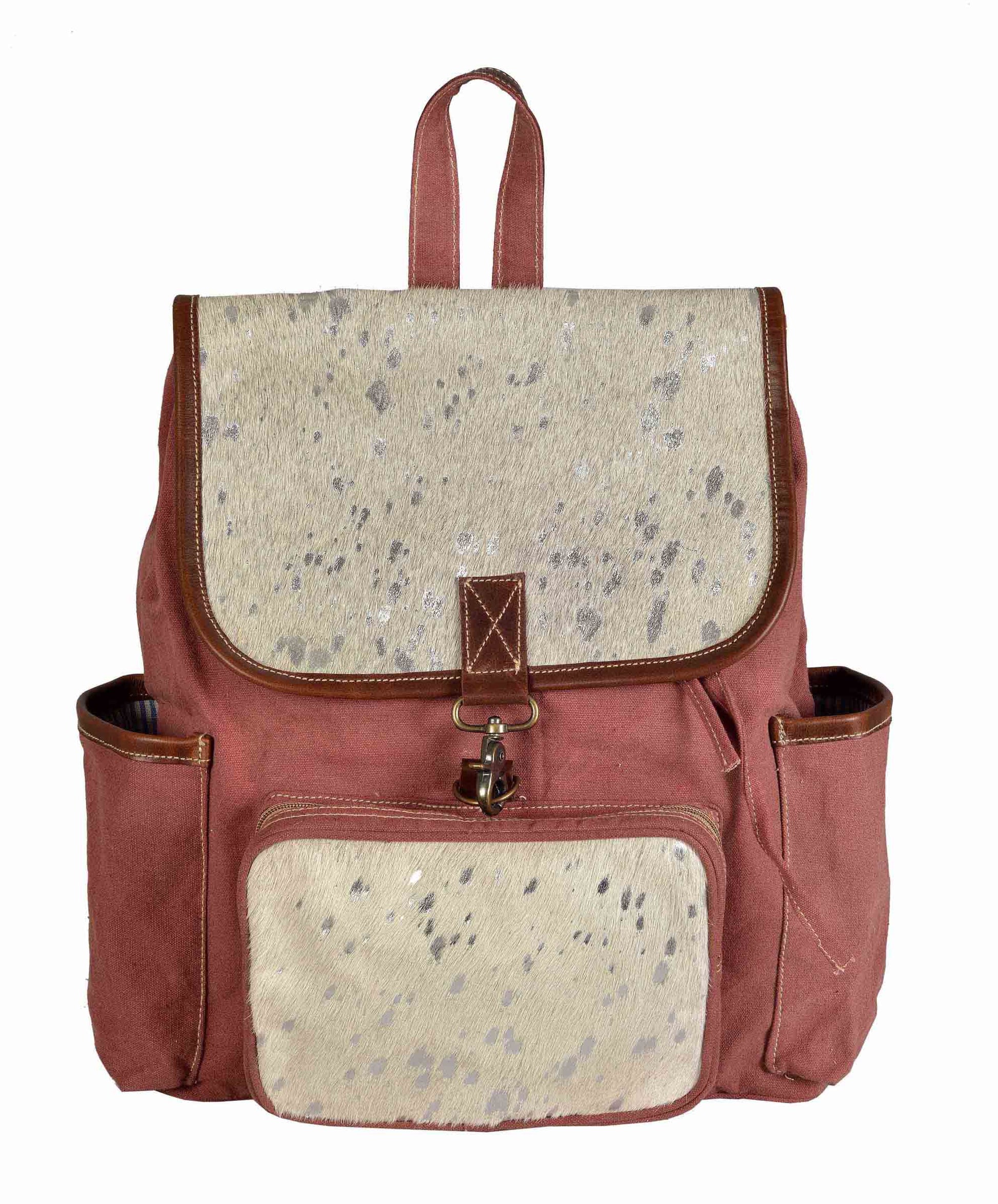 Time to add a blush of cotton and shine of hair-on to your style quotient with this tint-of-maroon backpack that says "It's time to look at me!"