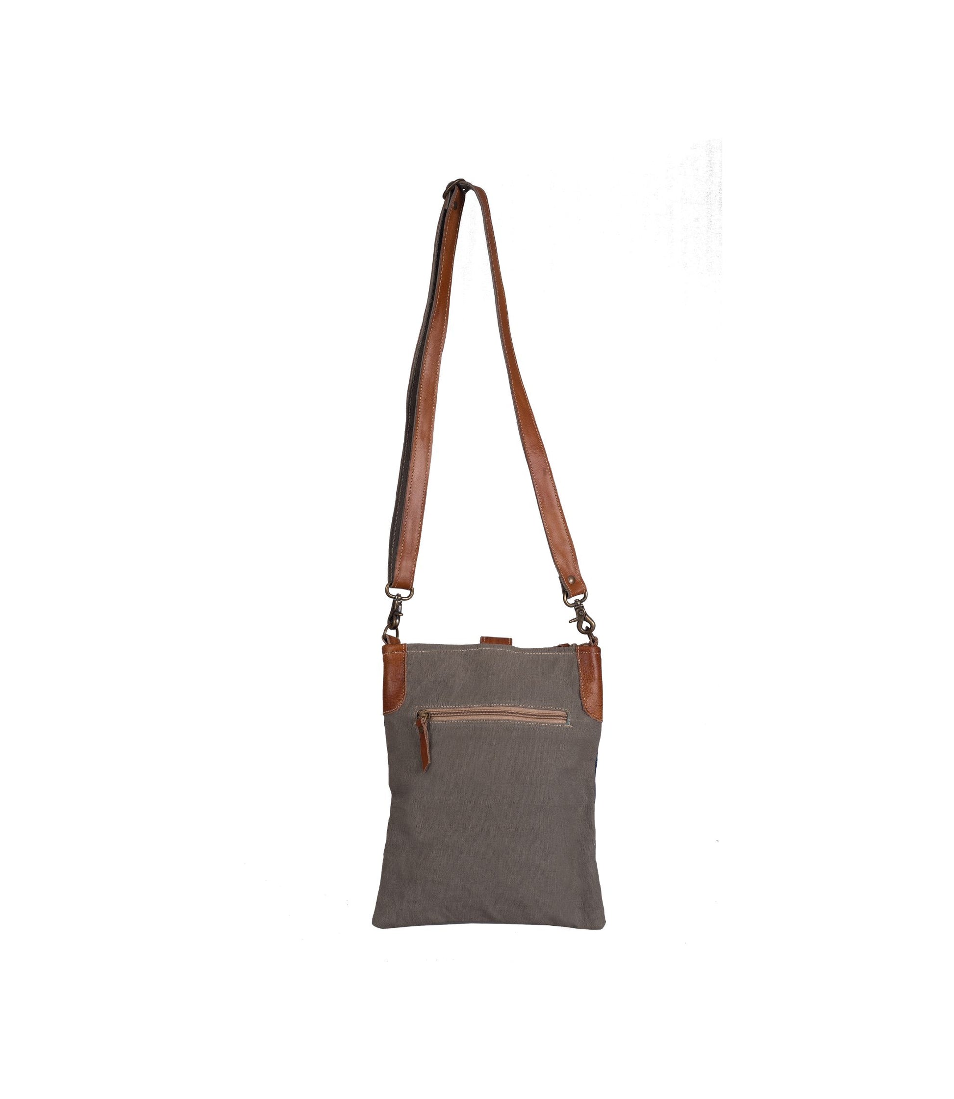 Made with crisp denim, premium cotton fabric, and antique leather accents and the shoulder strap, this sling bag is a go-to pick for all your daily essentials.