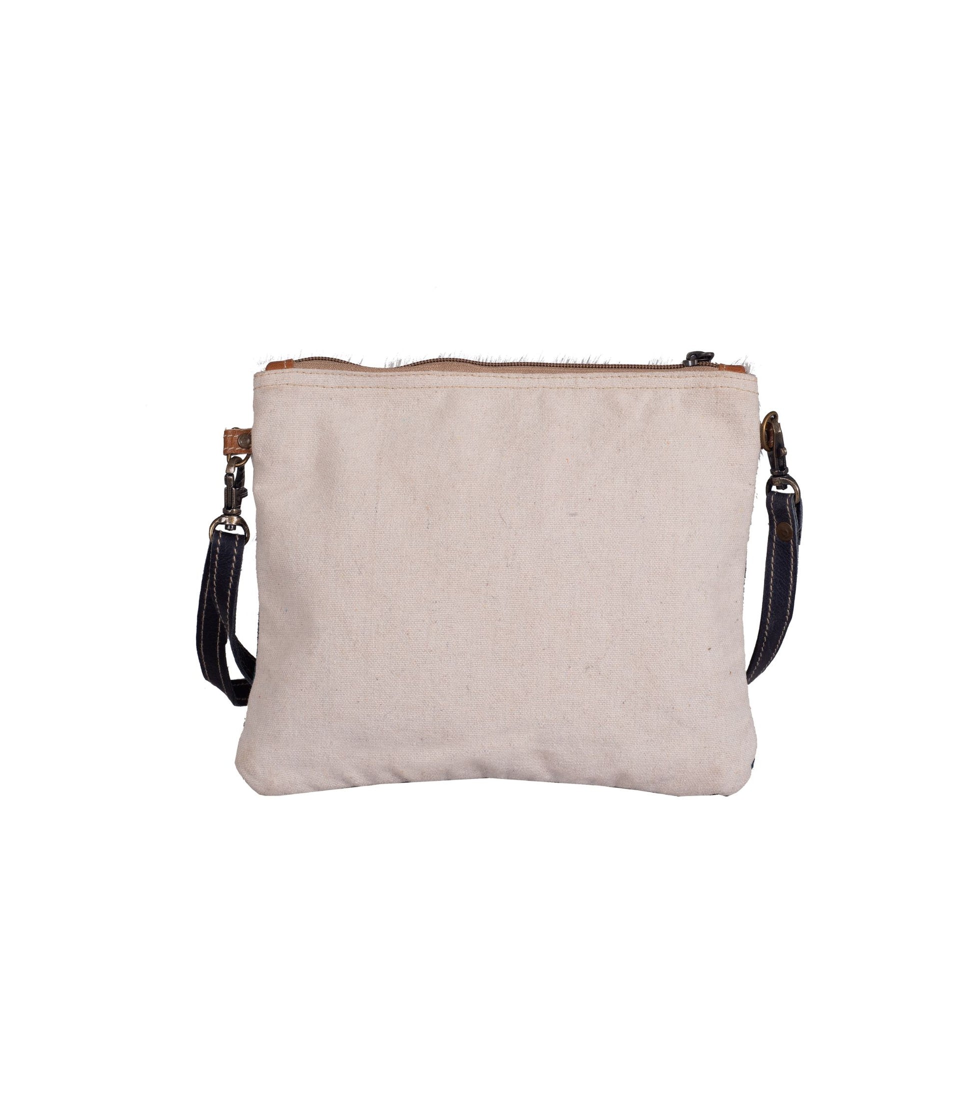 Suede leather and hairon leather small bag with shoulder strap