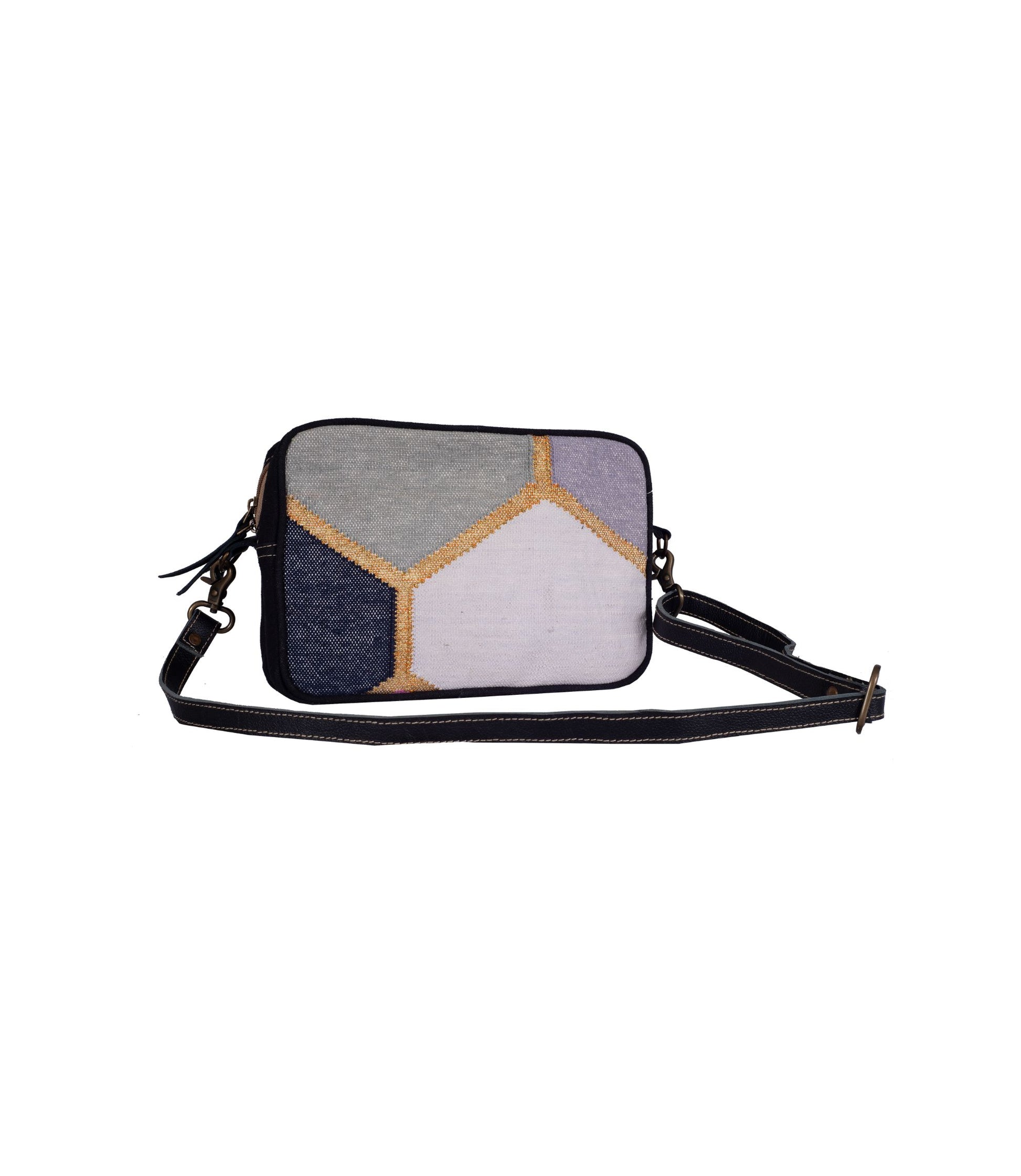This unique amalgamation of kintsugi weaves across pastel hexagons makes this cotton fabric bag look traditional and modern at the same time.
