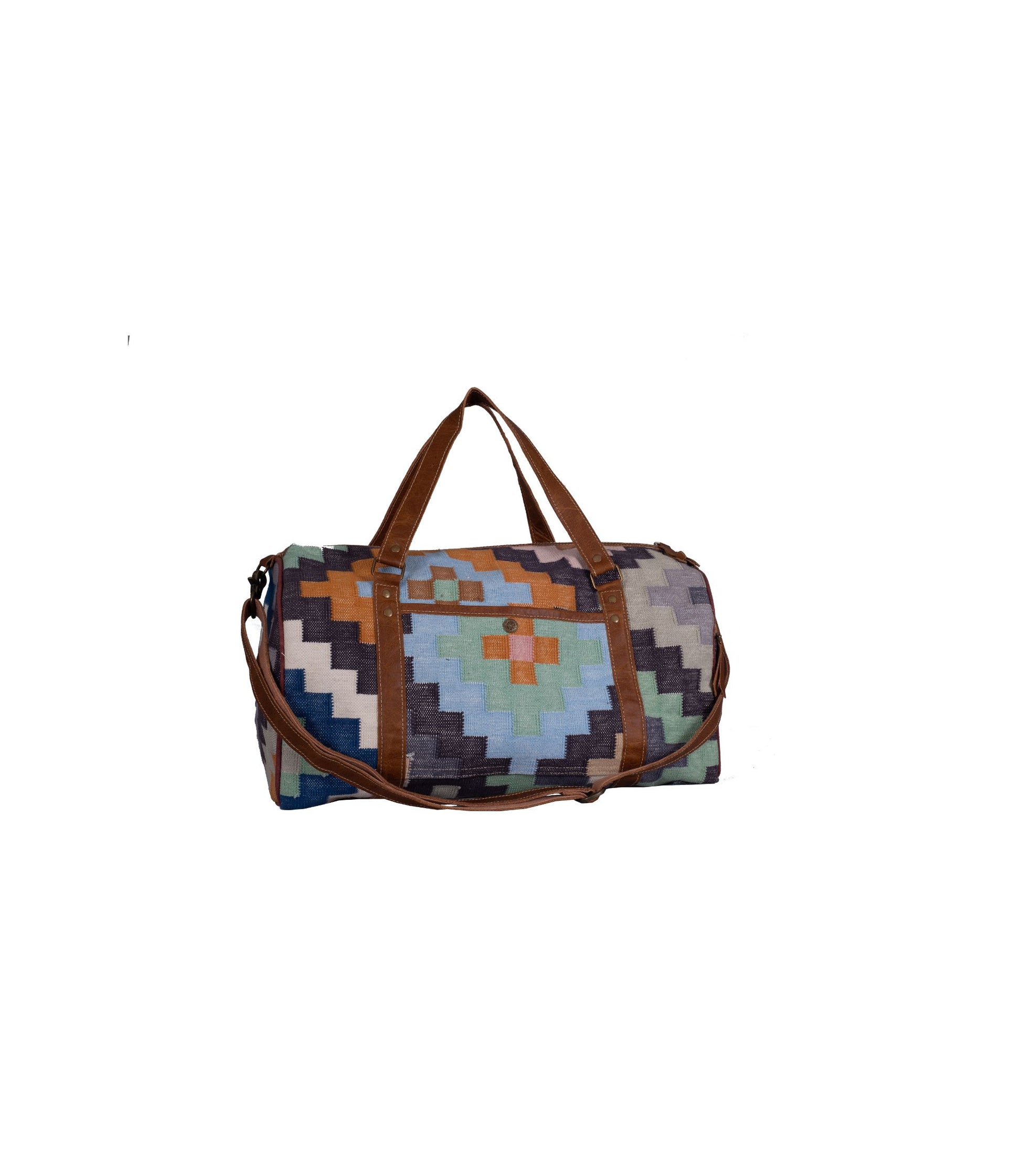 This pastel-hued, oh-so-spacious duffle is handcrafted with cotton and is adorned beautifully with leather accents that make it your much-needed travel companion.
